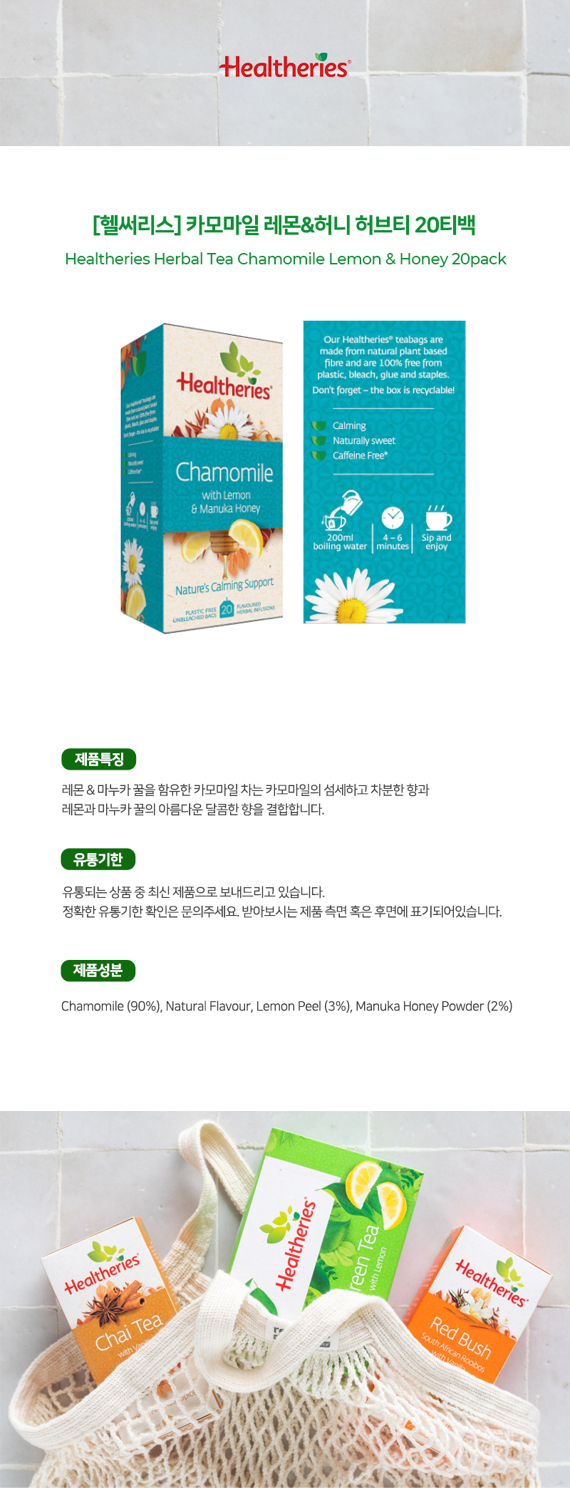헬서리스 카모마일 레몬&허니 허브티 20티백X4