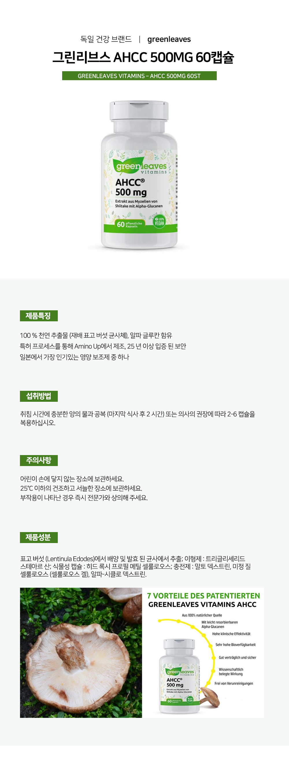 greenleaves 그린리브스 AHCC 500mg 60캡슐