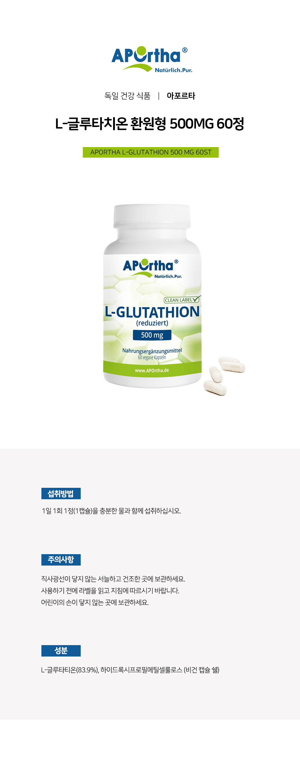 APOrtha L-글루타치온 환원형 500mg 60정