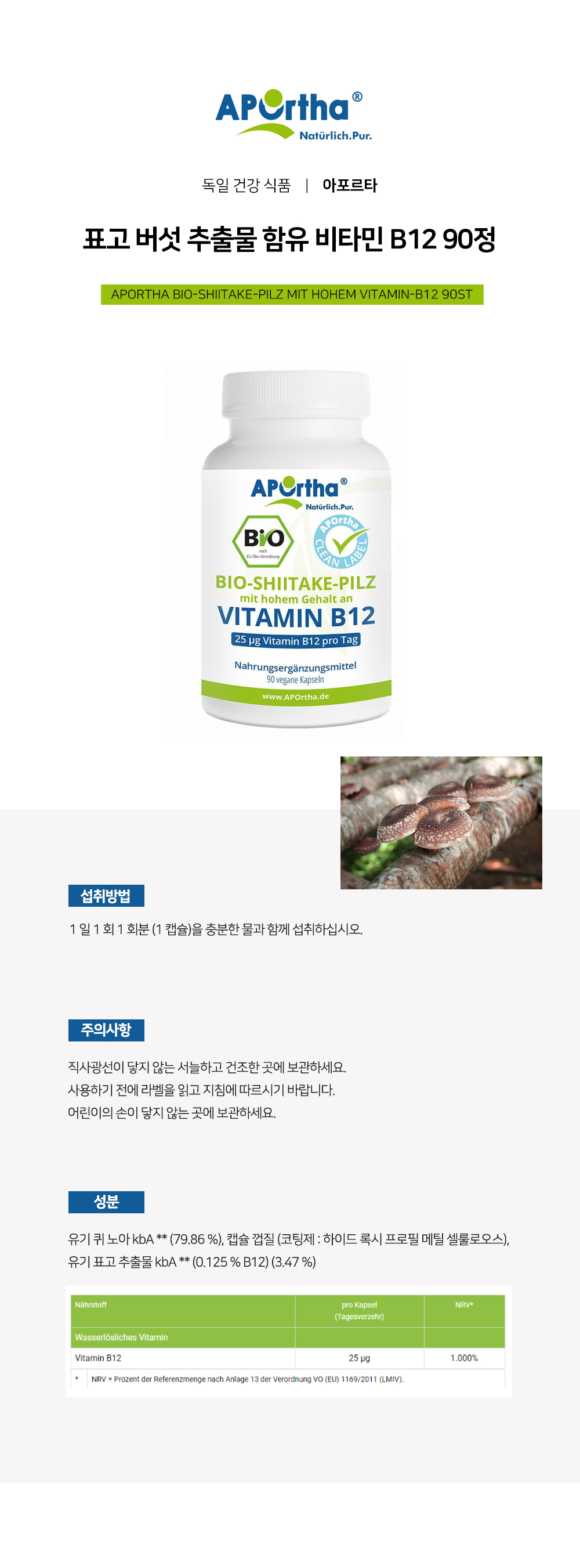 APOrtha 표고 버섯 추출물 함유 비타민 B12 90정