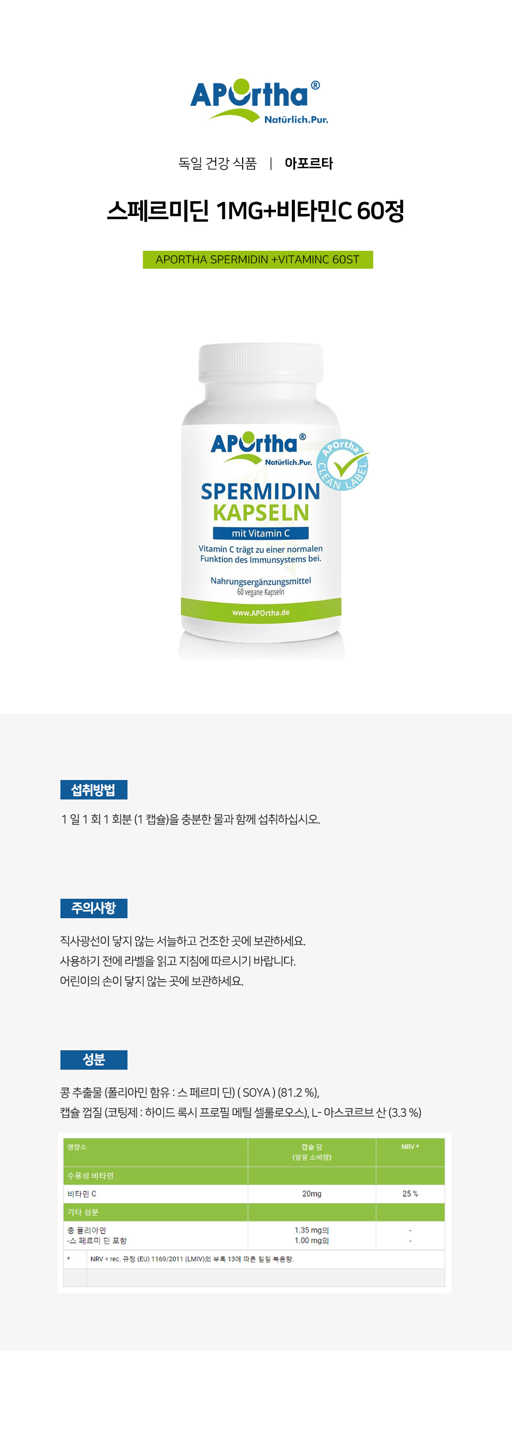 APOrtha 스페르미딘 1mg+비타민C 60정