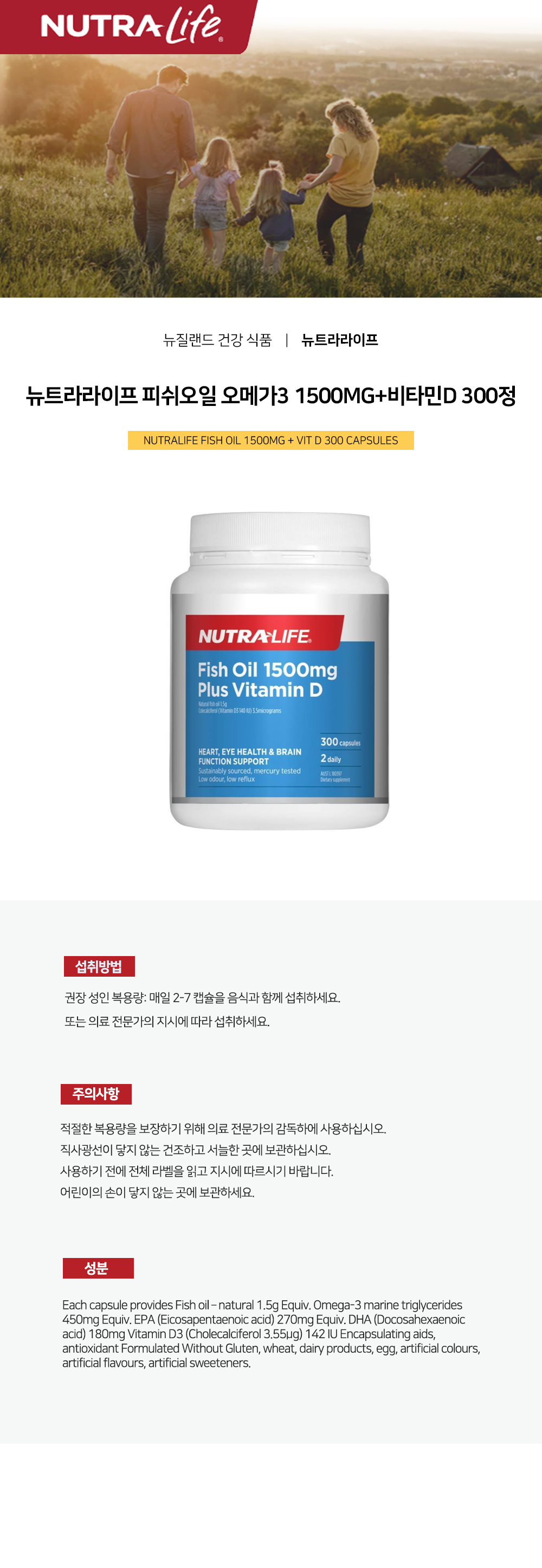 뉴트라라이프 피쉬오일 오메가3 1500mg+비타민D 300정