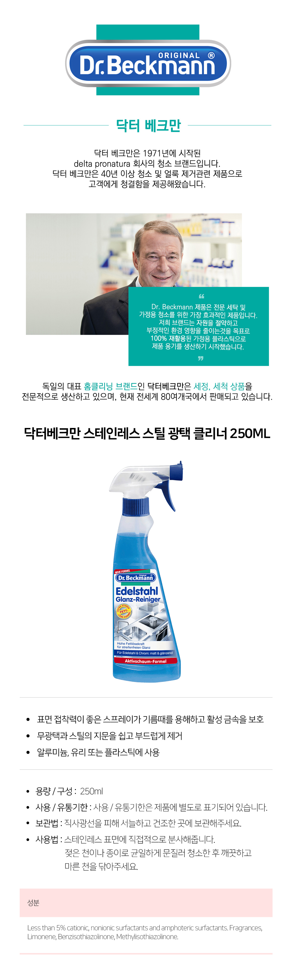 닥터베크만 스테인레스 스틸 광택 클리너 250ml X3