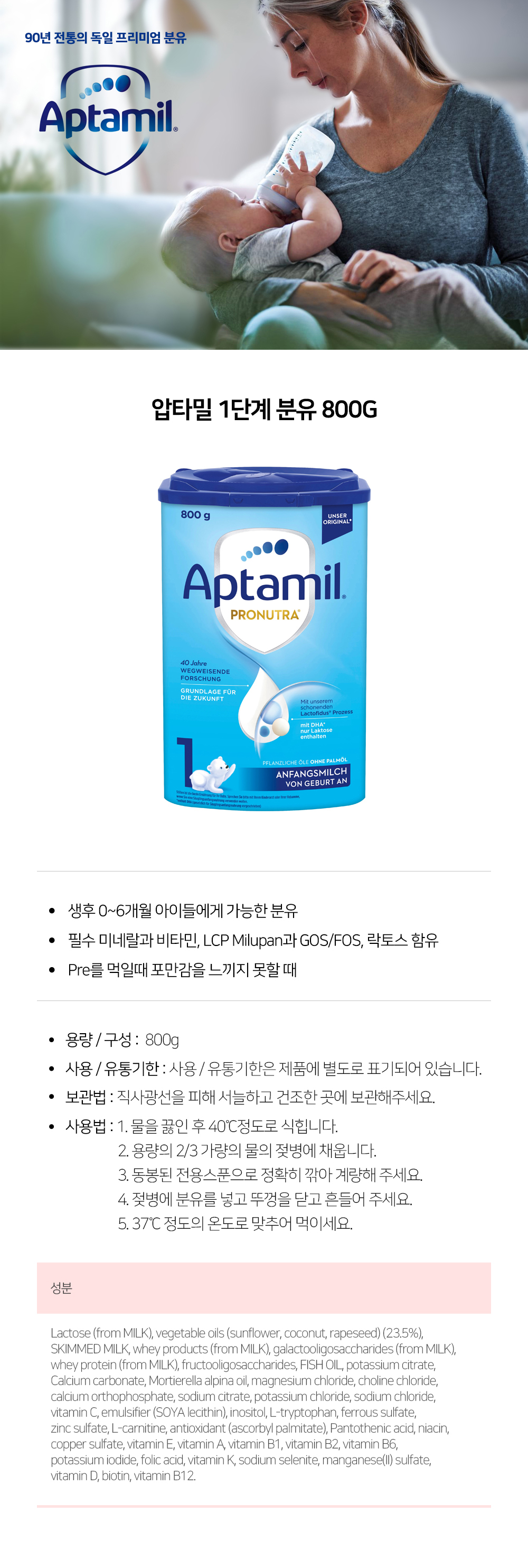 압타밀 1단계 분유 800g