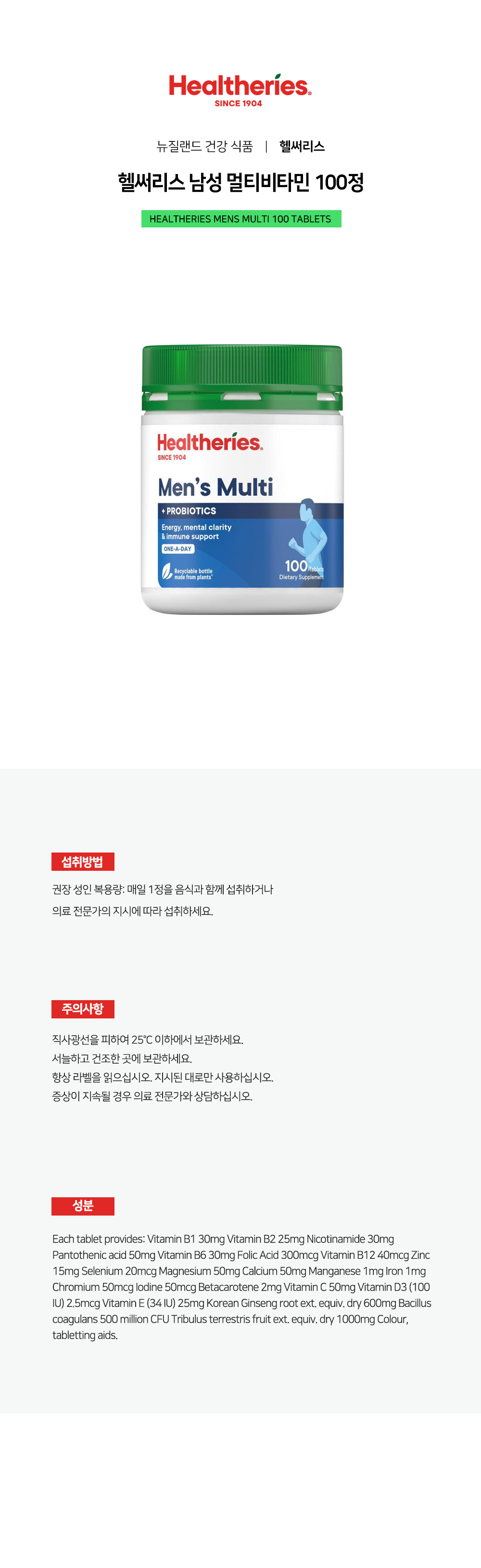 헬써리스 남성 멀티비타민 100정