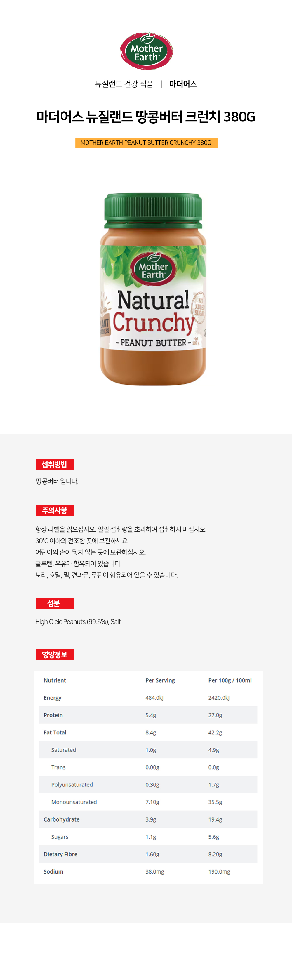 마더어스 뉴질랜드 땅콩버터 크런치 380gX3