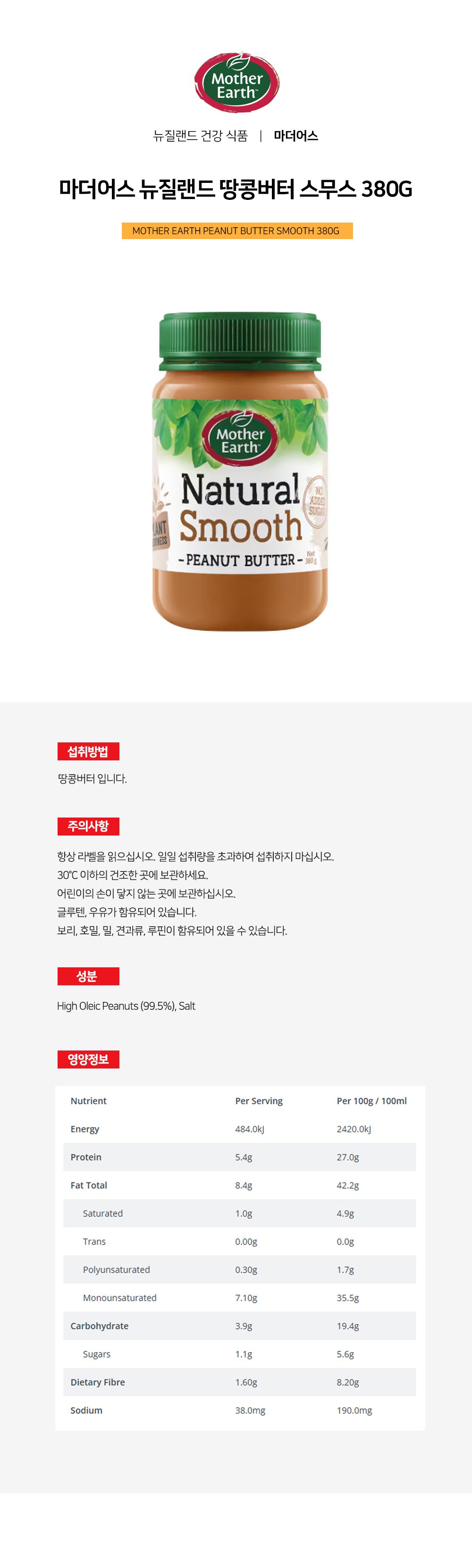 마더어스 뉴질랜드 땅콩버터 스무스 380gX3