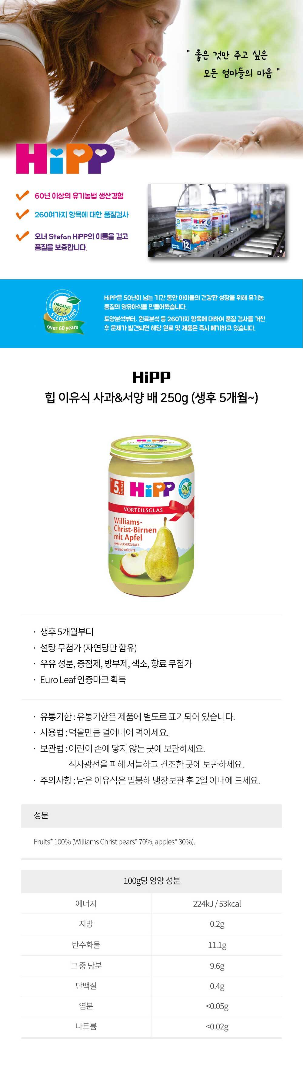 힙 이유식 사과&서양 배 250g (생후 5개월~)