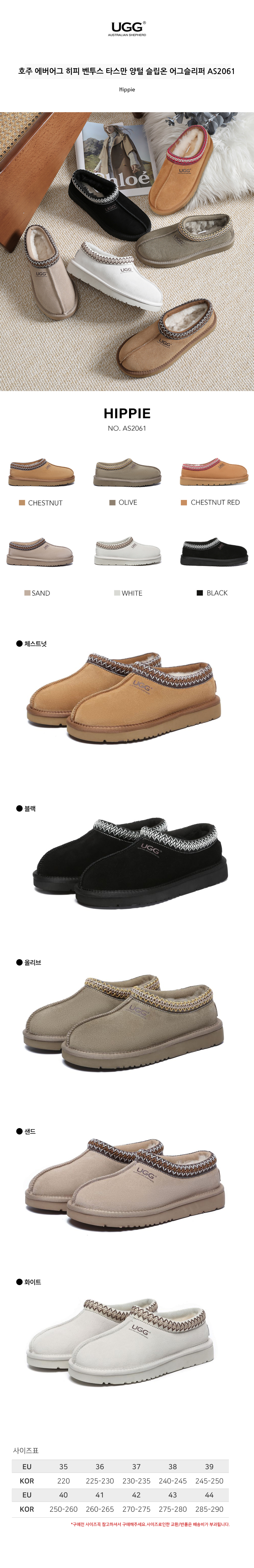 호주 에버어그 히피 벤투스 타스만 양털 슬립온 어그슬리퍼 AS2061