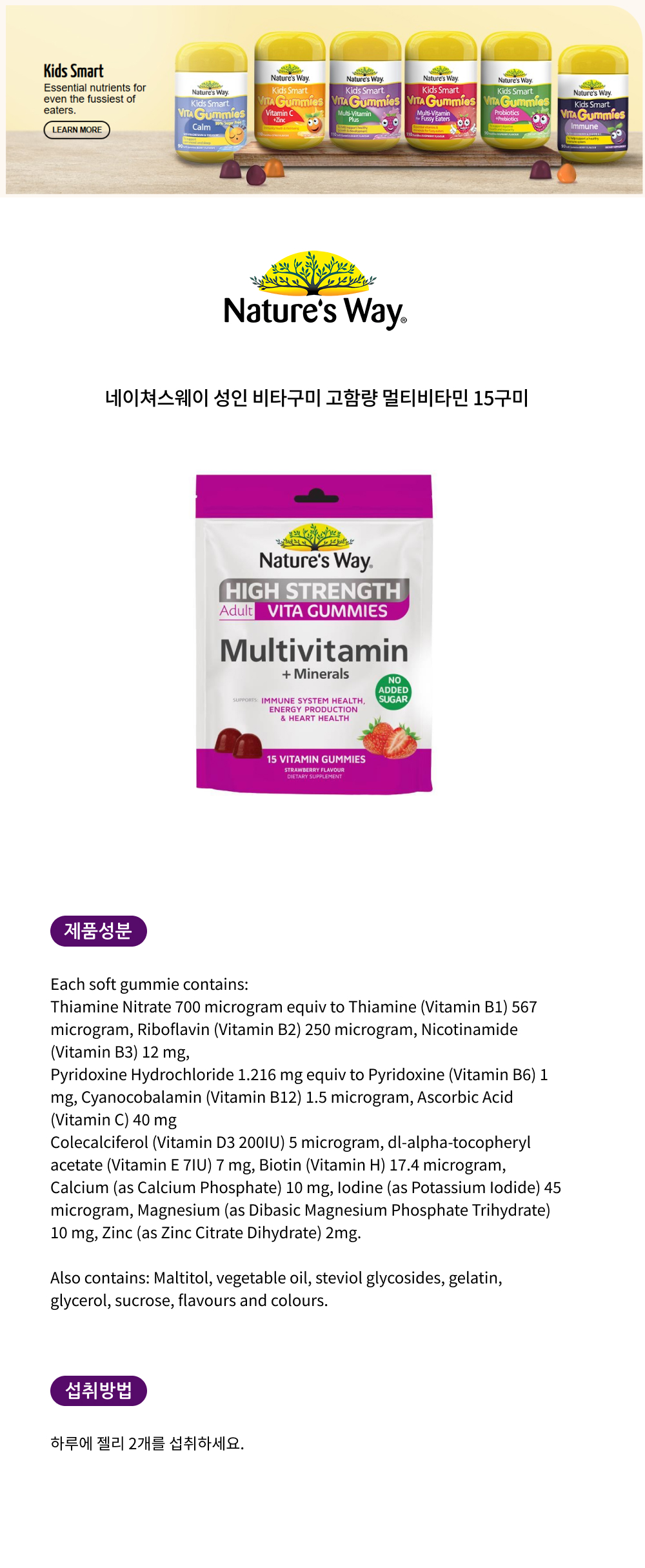 네이쳐스웨이 성인 비타구미 고함량 멀티비타민 15구미