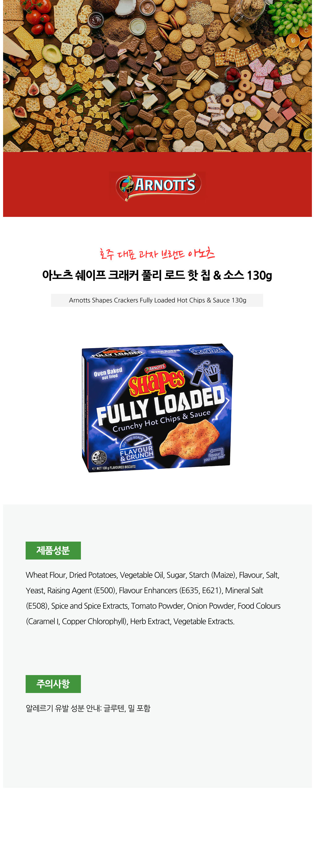 아노츠 쉐이프 크래커 풀리 로드 핫 칩 & 소스 130g X3개
