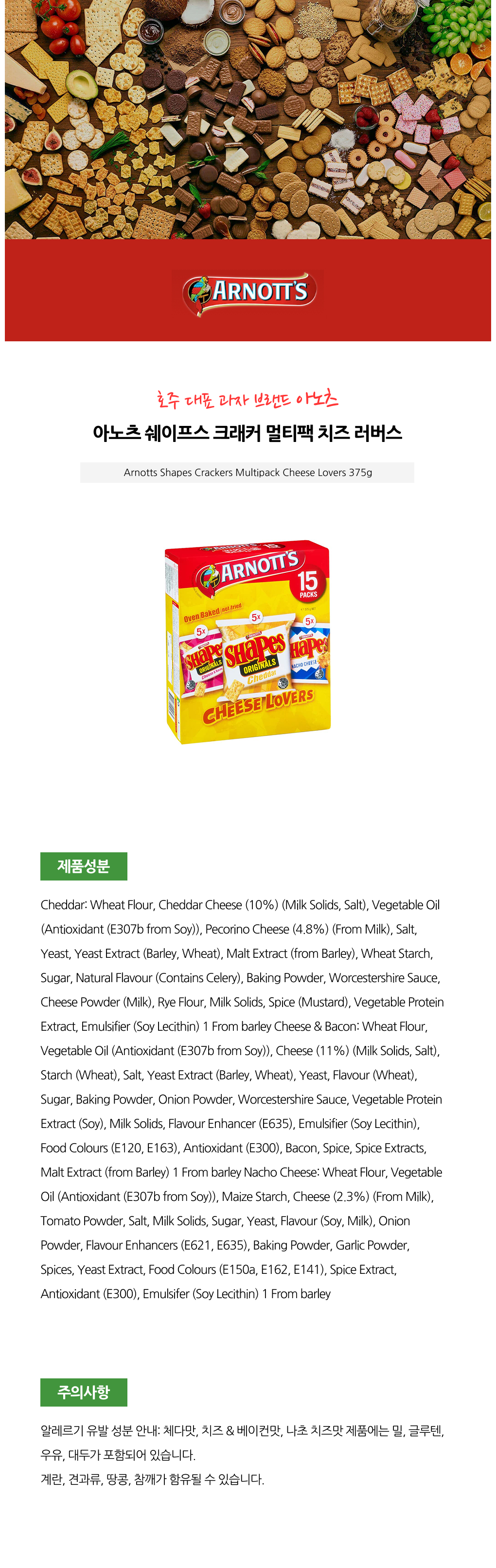 아노츠 쉐이프스 크래커 멀티팩 치즈 러버스 X3개