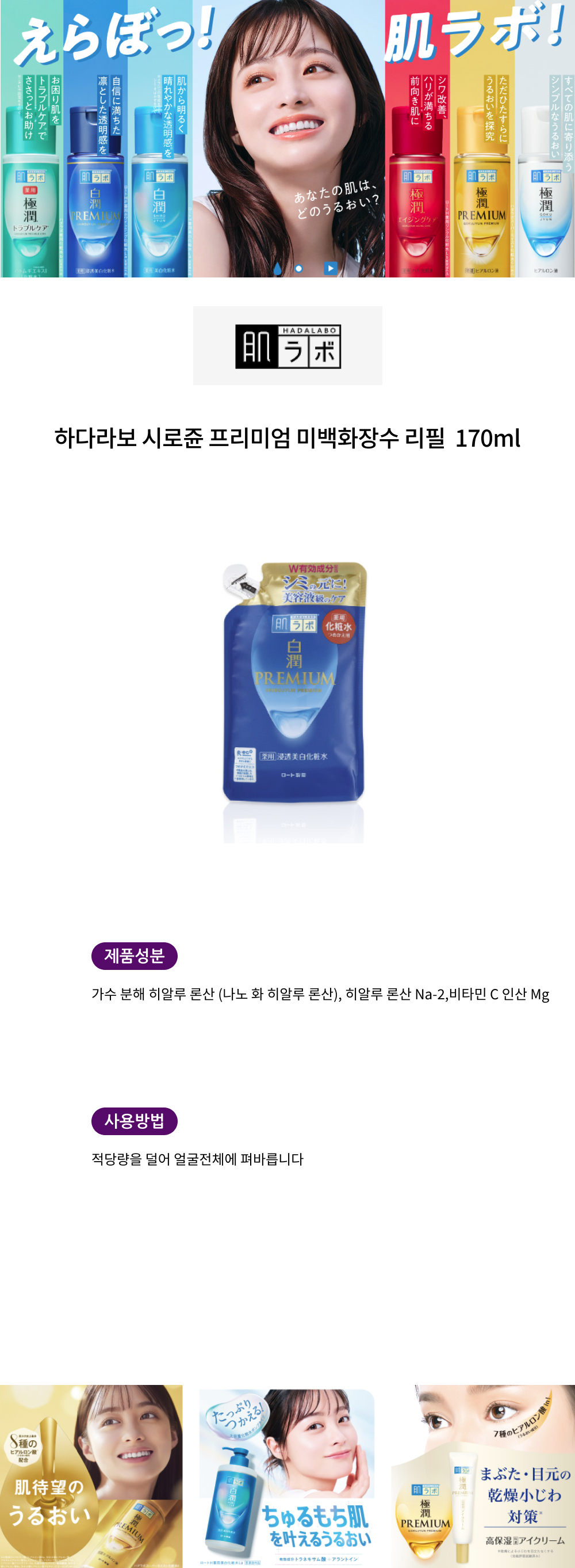 하다라보 시로쥰 프리미엄 미백 화장수 리필 170ml