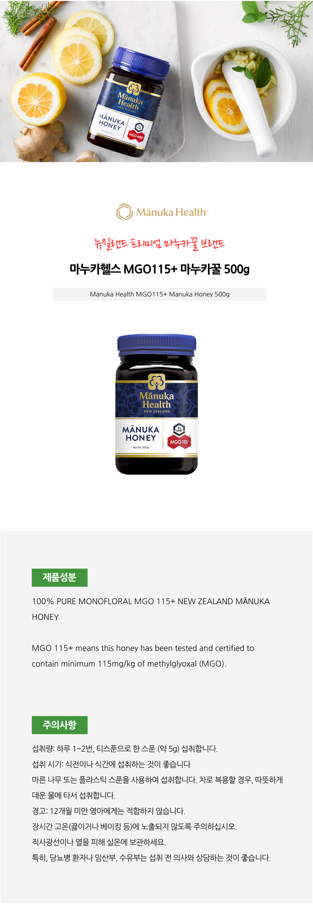 마누카헬스 MGO115+ 뉴질랜드 마누카꿀 500g
