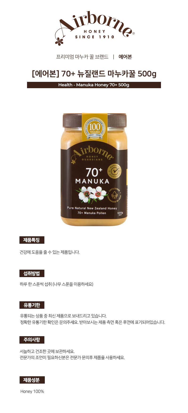 1+1 에어본 마누카꿀70+ 500g+마누카사탕