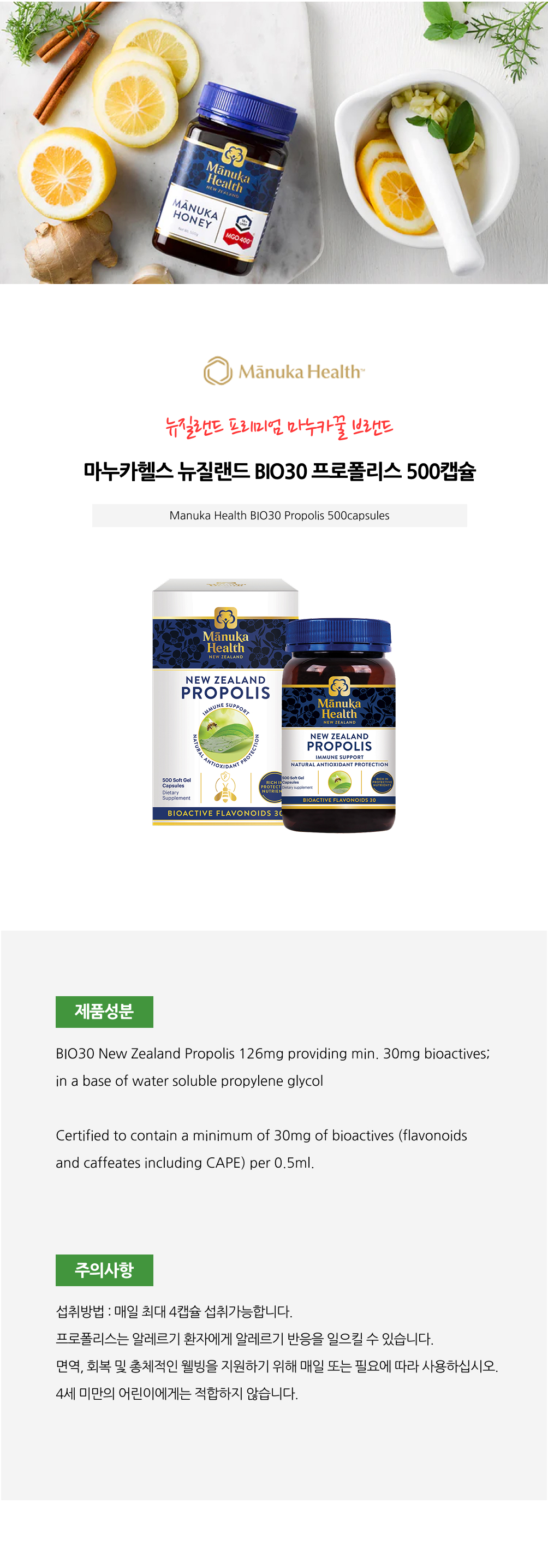 마누카헬스 뉴질랜드 BIO30 프로폴리스 500캡슐
