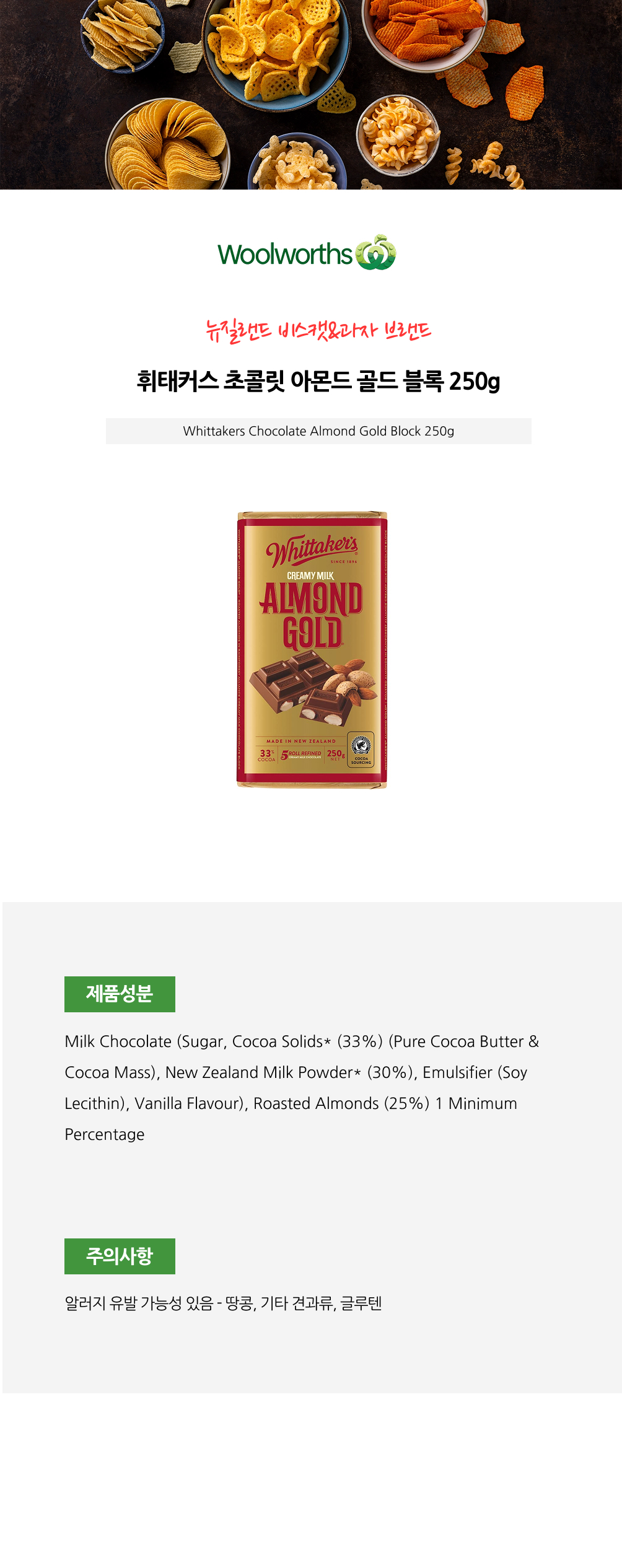 휘태커스 초콜릿 아몬드 골드 블록 250gX6개