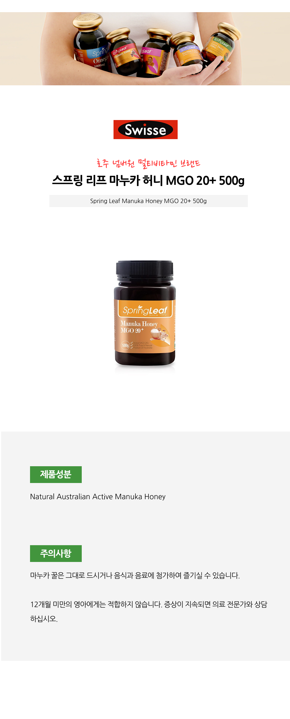 스프링리프 마누카 허니 MGO 20+ 500g