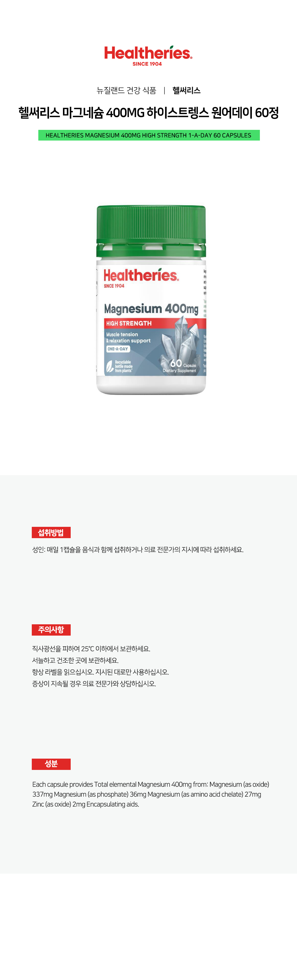헬써리스 마그네슘 400mg 하이스트렝스 원어데이 60정